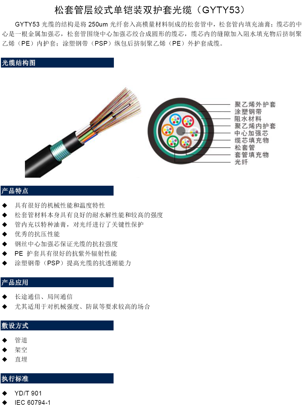 松套管层绞式单铠装双护套光缆(GYTY53)